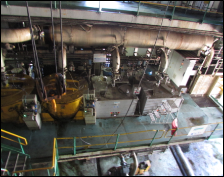 Après la pousse de la canne qui a duré 6 mois, elle est acheminée en cachalot jusqu’à l’usine. La première étape que la canne subit est l’extraction par broyage. Ensuite on séparera la bagasse du jus de canne. (La bagasse servira à produire de l’énergie) tandis que le jus de canne continuera son chemin vers la cristallisation puis l’essorage.